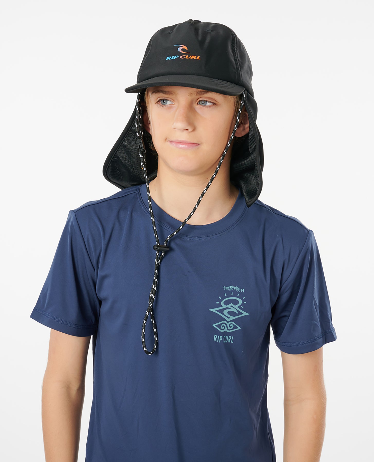 The Boys Beach Cap is an epic poly elastane legionnaires hat complete with back flap, chin toggle, and multi-colour Rip Curl logo.